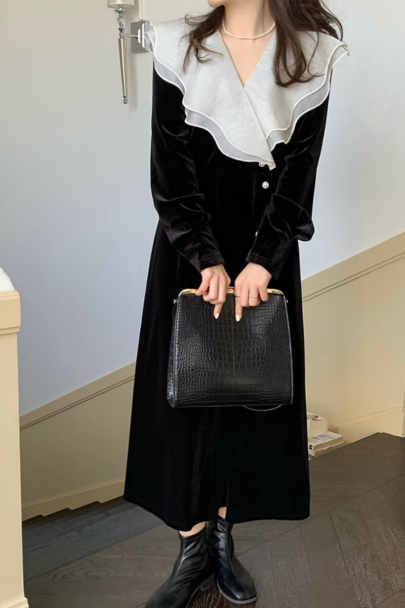クラシカルな雰囲気が魅力的なベロアワンピース