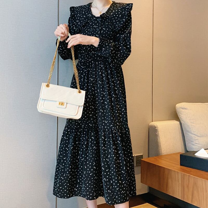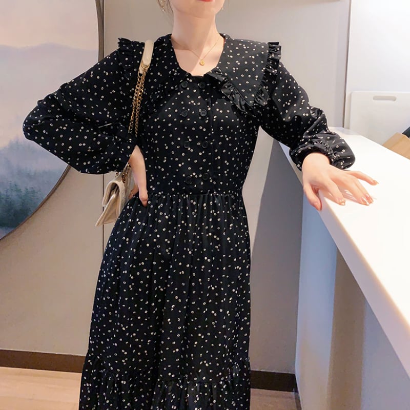 大きめな襟が今年らしいクラシカルな雰囲気のワンピース