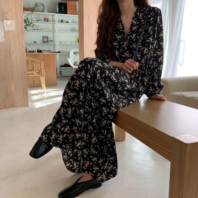 小花柄カシュクールマキシワンピース 全2色 R1005