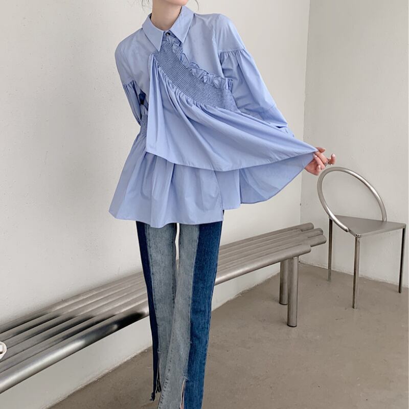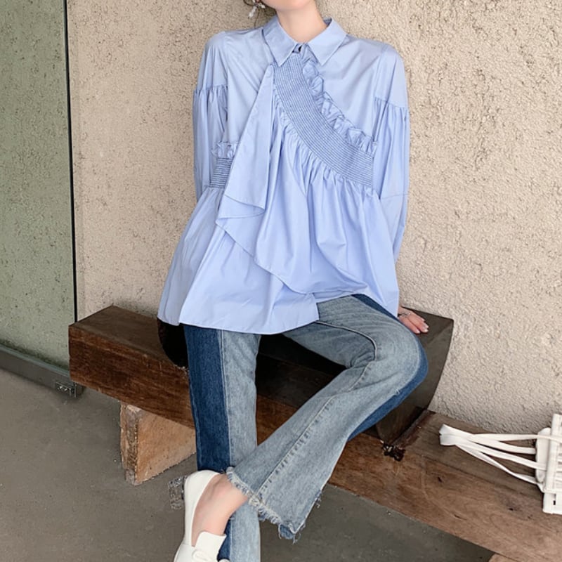 フリルデザインシャツブラウス R1015