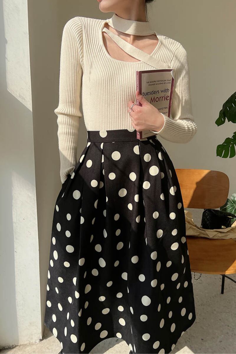 ドットスカートドッキングワンピース R1022