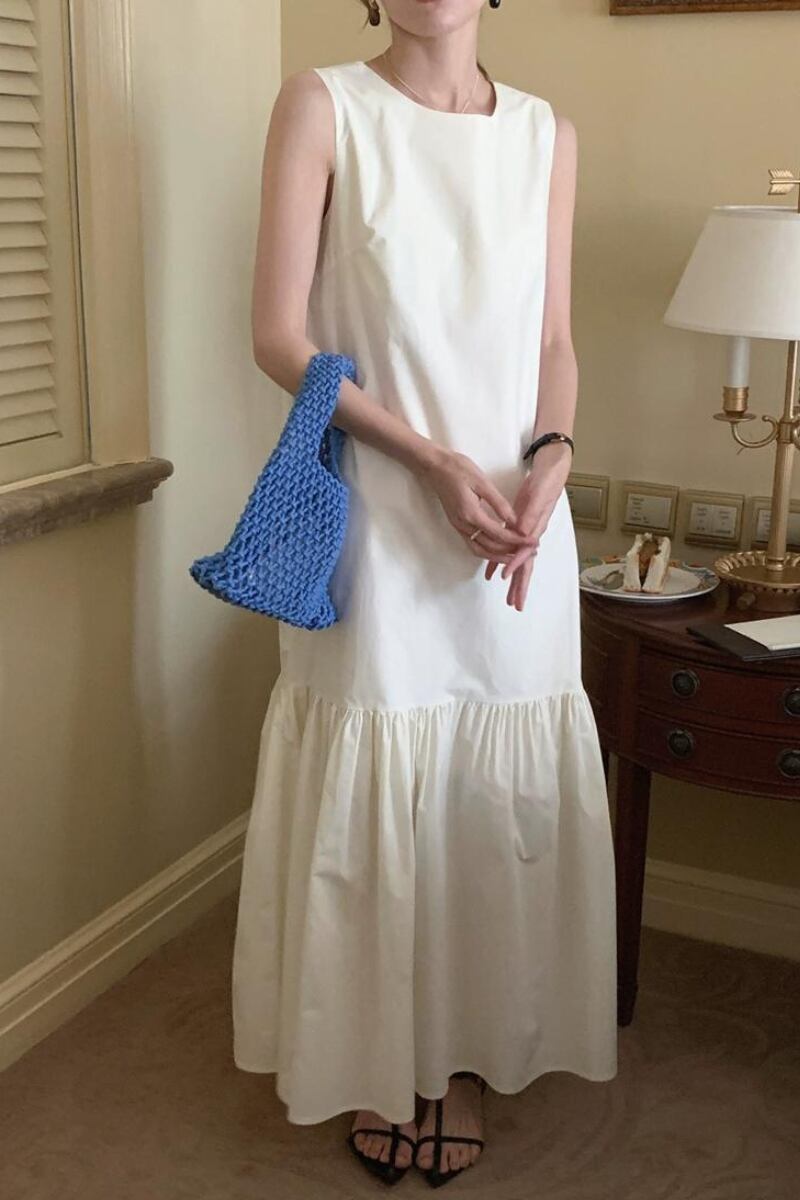 裾フレアバッグデザインノースリーブワンピース 全3色 R1275