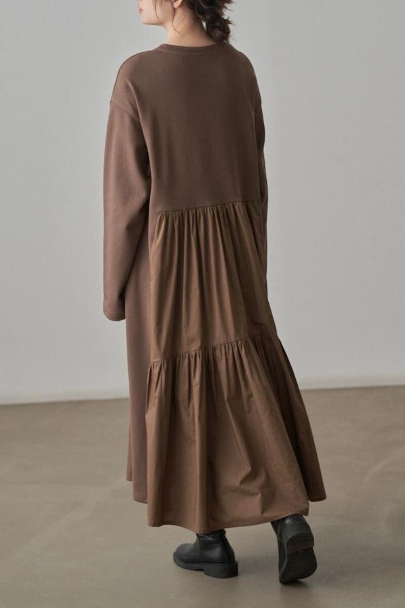 異素材ミックスシャーリングワンピース 全2色 R1352